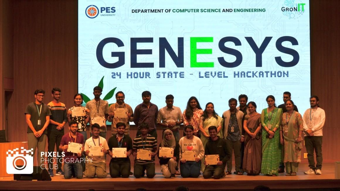 The 24-hour state-level hackathon focused on tackling sustainability challenges with the practical solutions based on AR-VR, Cybersecurity, Gen AI, and open projects. With expert mentorship the teams showcased cutting-edge fixes that blended technology with real-world impact. Genesys 2025 hackathon was organized by GronIT - The Green Computing Club under the Department of CSE on February 1-2, 2025, at RR campus.