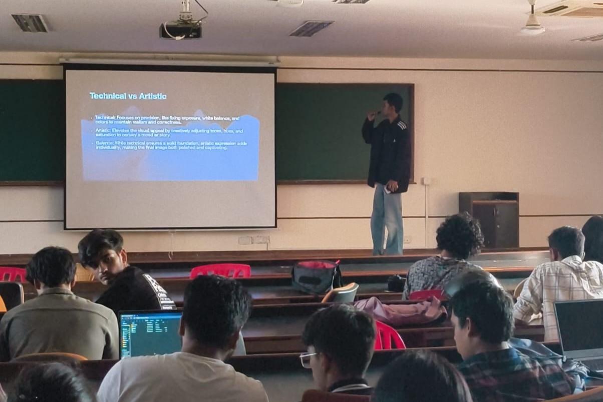 The workshop equipped attendees with essential skills in camera handling, storytelling, and color grading, spanning both fundamental and advanced techniques. The mentors ensured hands-on learning and interactive discussions. Participants gained valuable insights into professional photography workflows, enhancing both their technical proficiency and creative approach. Pixelloid club organized the workshop on photography on March 26, 2025 at EC campus.
