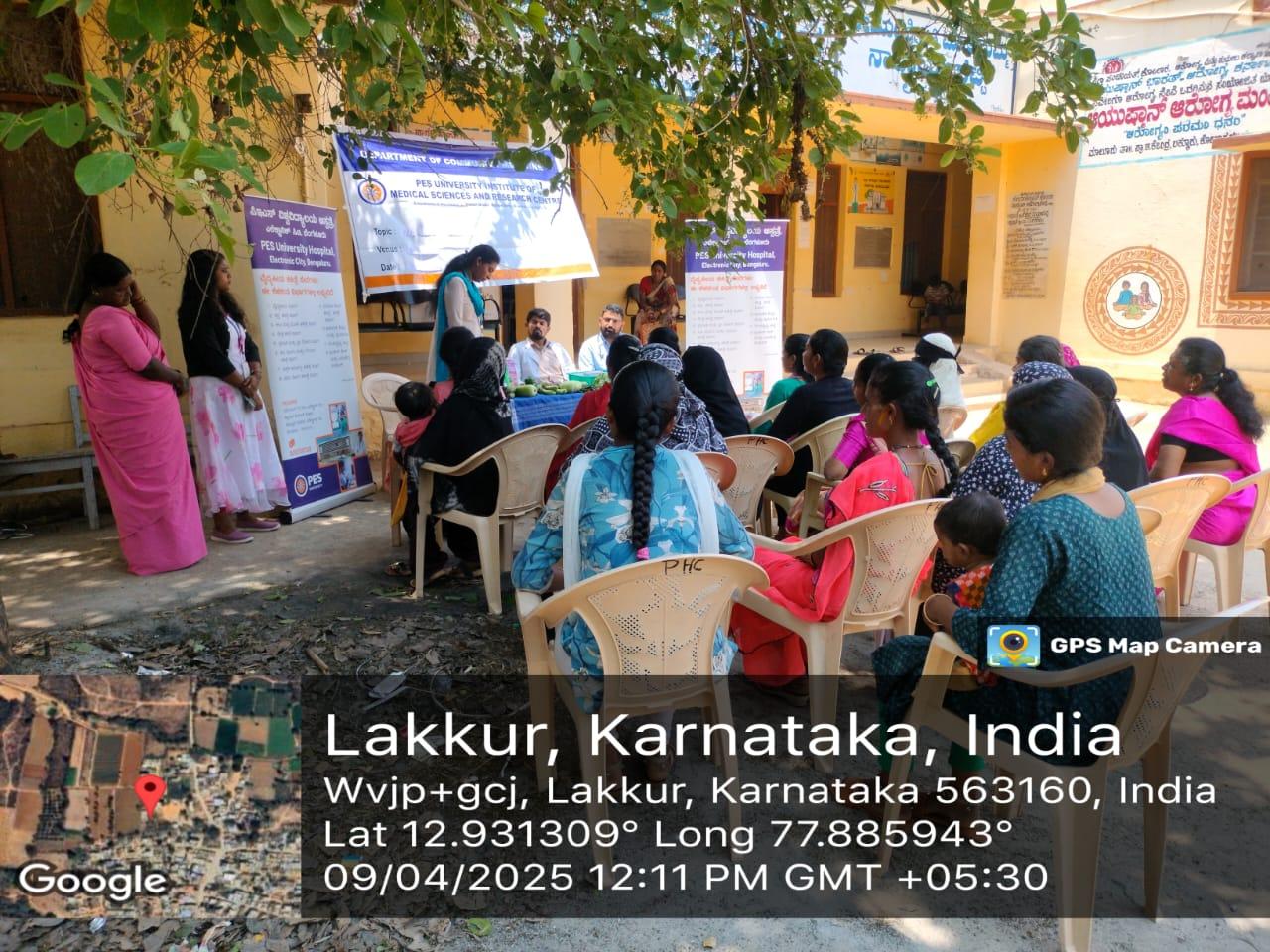Interactions of medical professionals with local communities to raise awareness of global health issues is crucial for promoting health and well-being. This year’s theme, Healthy Beginnings, Hopeful Futures, highlighted the critical role of maternal and newborn health in shaping long-term well-being. Aligning with the theme, an antenatal health check-up was conducted for all registered pregnant women at Rural Health Training Centre (RHTC) Lakkur. A screening camp was also organised in which high risk antenatal cases were diagnosed and managed. The RHTC team visited the anganwadi centres where health screening was done for under five children in the area. Apart from these, a sensitisation programme along with PMSMA was conducted in which OBG specialist from PESUIMSR, medical officer of PHC addressed the pregnant and lactating women regarding health promotion, nutritional intake, immunisation, family planning and child rearing practices. This initiative served as a reminder of the urgent need to focus on maternal and newborn health and ensure that women have access to healthcare specialists and infrastructure during pregnancy, labour, delivery and child care. On April 9, 2025, Dept of Community Medicine in collaboration with RHTC at Lakkur observed World Health Day with social outreach addressing an important medical issue in our country.