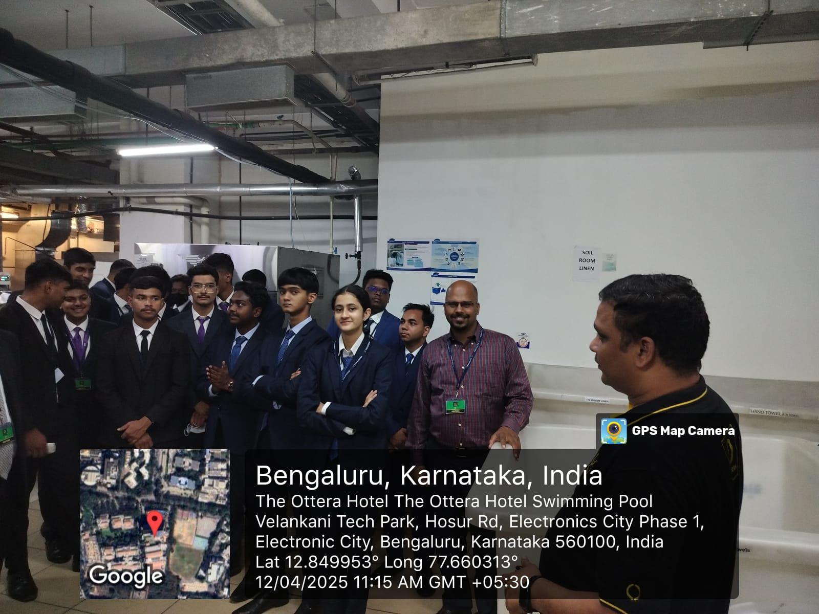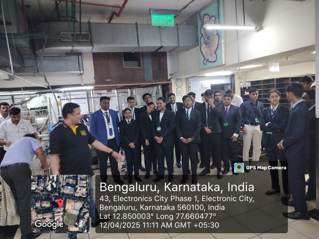 Laundry operations in the hospitality industry is an important part of back-of-house housekeeping functions. Field study of laundry operations of a leading luxury hotel provided an exposure to the workflow, hygiene protocols, industrial laundry equipment and sustainable linen management practices to the students. The Department of BBA HEM in association with Professional Housekeepers Association, the appellate body of housekeepers in the country organized the field visit to the advanced laundry at the Otera hotel in Bangalore on April 12, 2025.
