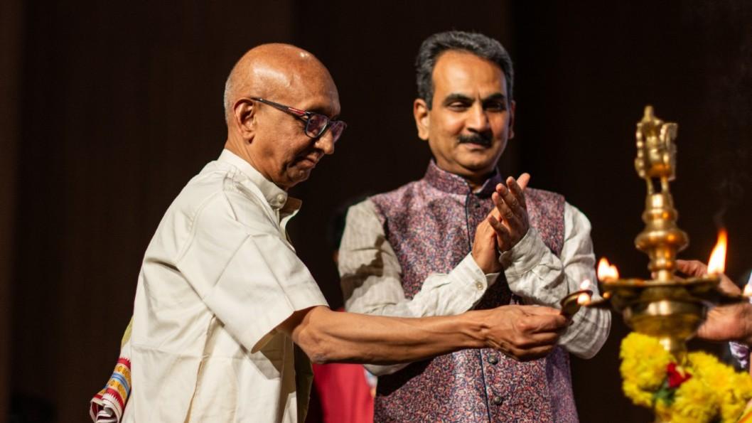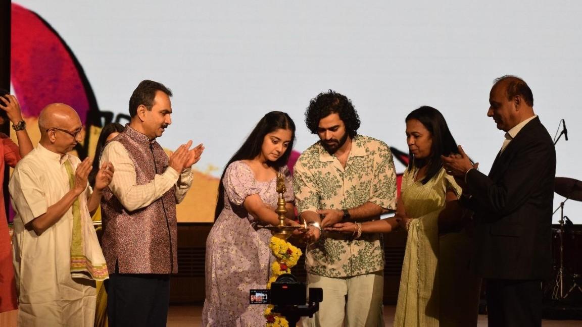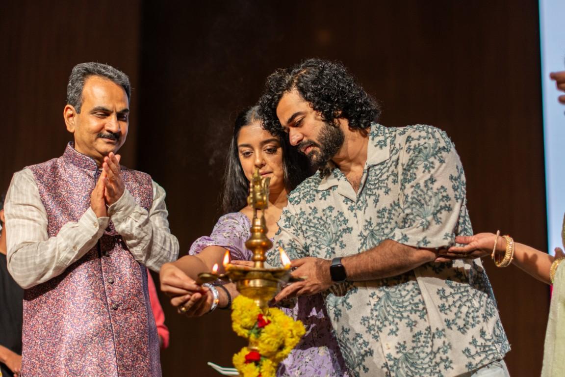 Ankita Amar took the stage next, offering a heartfelt speech that honored Dr. Doreswamy’s memory. She shared an anecdote about her own experiences, reflecting on the dedication and legacy that Dr. Doreswamy had built through PES University. Amar also humorously linked her experiences in her film “Just Married” to some of the relevant experiences that students go through at universities. Both Shine and Ankita sang a beautiful rendition of “Paravashanadenu” and “Agar Tum Saath Ho”, much to the delight of the crowd.