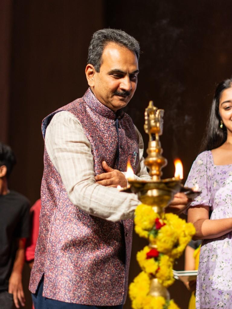 The Vice Chancellor Dr. J. Suryaprasad then addressed the audience with a brief yet impactful speech, filled with encouragement and a positive outlook for the future. His words resonated with the students and concluded by urging students to make the best of the evening, adding a lighthearted touch to the event.