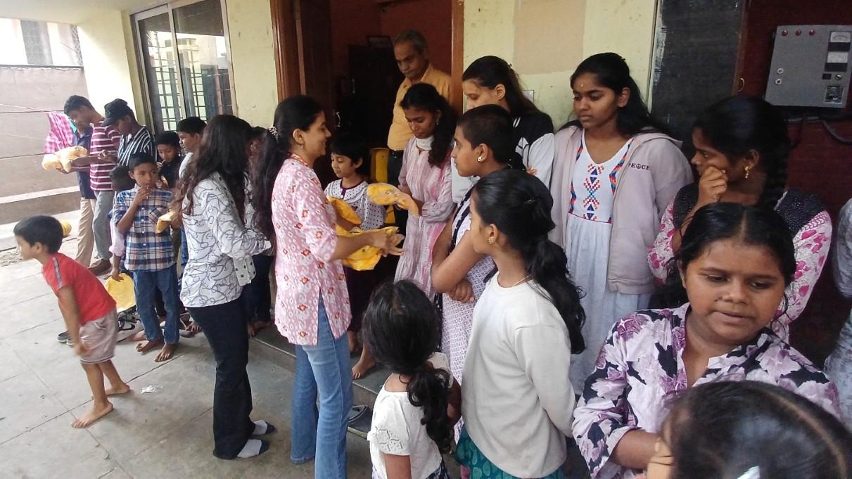 As part of the outreach initiative across Bengaluru volunteers distributed T-shirts to children, elderly, underprivileged, housekeeping staff, security guards, and construction workers. The volunteers visited Arya Sevashrama Trust, Sri Chaithanya Old Age Home, Prasanna Jyothi Orphanage, Anatha Shishu Sevashrama, Pragathi Charitable Trust, Belaku Shishunivasa, Amruta Shishunivasa, Sri Kalajyothi Charitable Trust and Helping Heroes India Foundation and interacted with the inmates spreading warmth and kindness on July 5-6, 2025.
