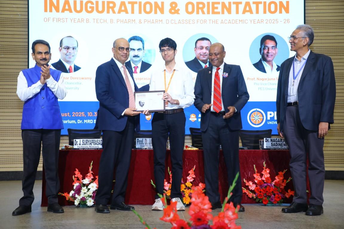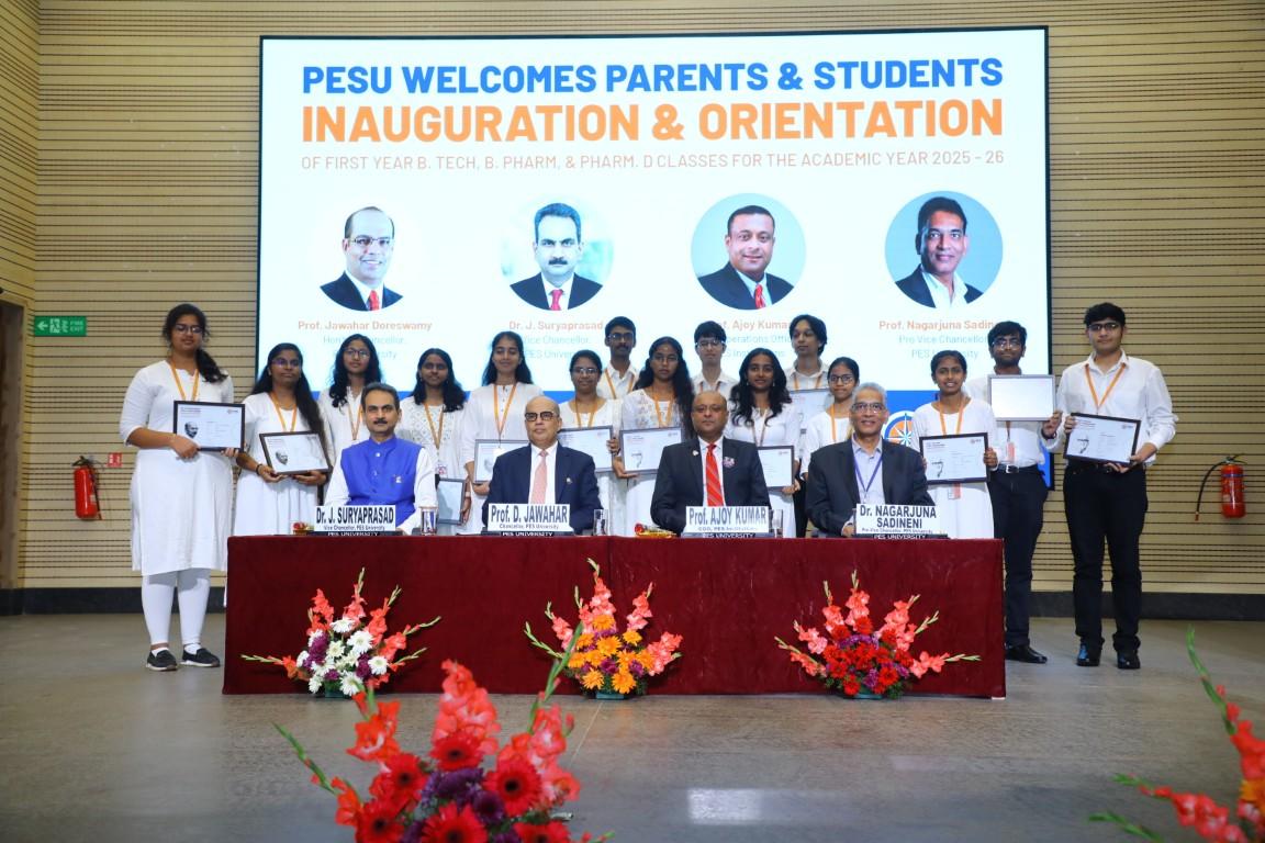 The inauguration and the orientation of the first year classes for B.Tech, B. Pharm and Pharm. Dprograms of PES University at Electronic city campus was held on 23rd August 2025.