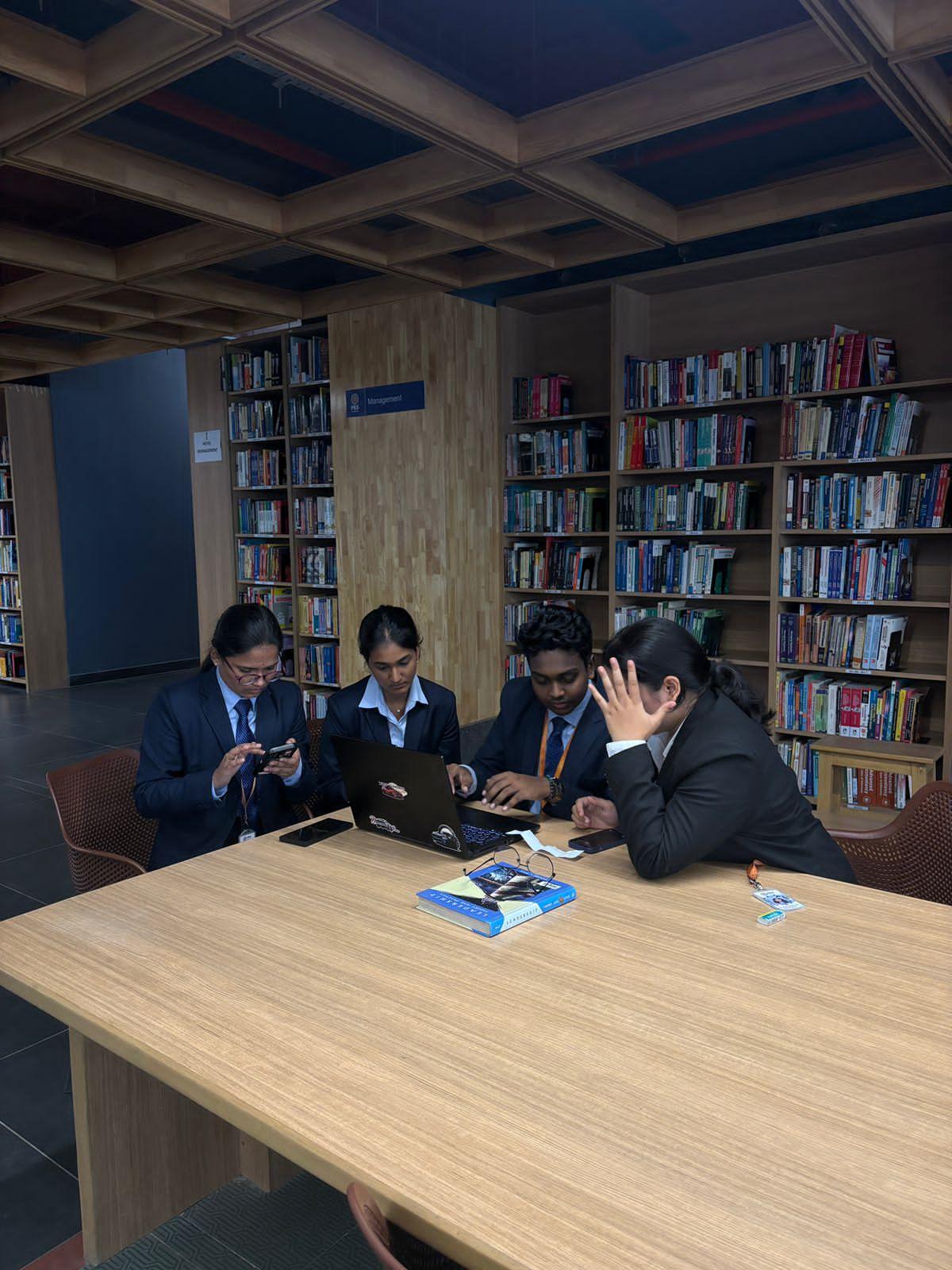 The event encouraged students to read books and to develop the skill of extracting relevant content from a given text to create study notes and presentation summaries. To enhance student interest and to provide a spirit of competition the study-a-thon was combined with a treasure hunt inside the library where students had to decode clues to find the topics and tasks for self-study. The department of BHEM conducted the learning drive as part of the Managing Services course on August 22, 2025 at the central library RR campus.