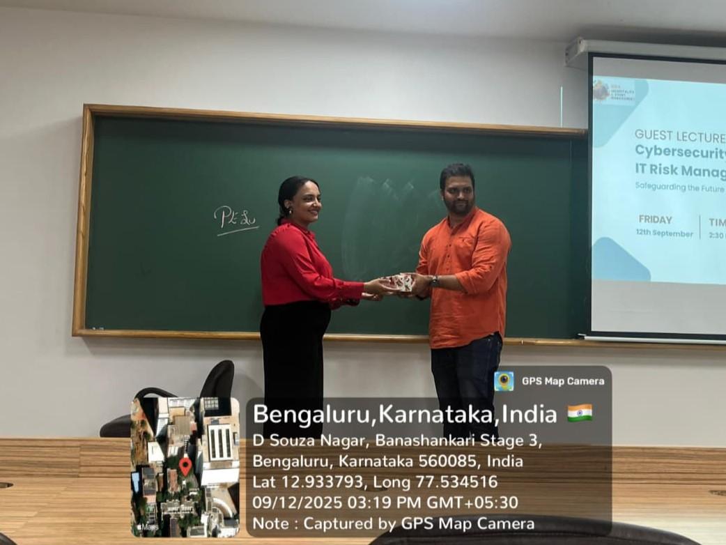 Cybersecurity and risk oversight are essential for safeguarding critical data and operations amid today’s escalating cyber threats.The talk on IT security and risk Management by Mr Vijay Kumar, Chief Information Security Officer, IIFL Bangalore was organized by the department of BBA-HEM on September 12, 2025 at RR campus.
