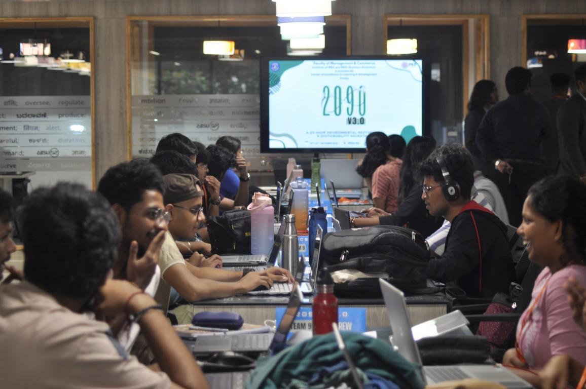 On September 12–13, 2025, PES University hosted the 2090 Hackathon V3.0, a 24-hour innovation sprint focused on Environmental Restoration and Sustainability. Organized by the Faculty of Management and Commerce, Institute of BBA and Business Analytics, in association with the Center of Excellence in Learning and Development, the event brought together over 250 students from diverse courses.
