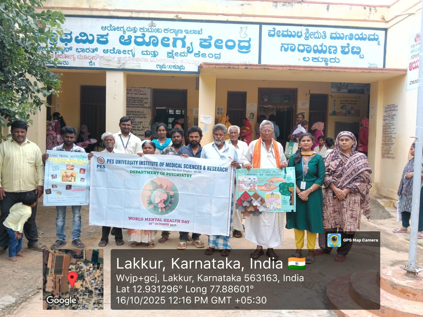 On 14th October 2025, the Department of Community Medicine, in collaboration with the Department of Psychiatry, PESU Institute of Medical Sciences and Research (PESUIMSR), observed World Mental Health Day at the Rural Health and Training Centre (RHTC), Lakkur.