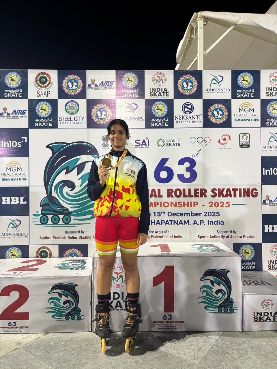 At the 63rd National Roller Skating Championships 2025, held in Vizag from 7th to 10th December, Ananya clinched the Gold Medal, showcasing her exceptional talent and dedication.