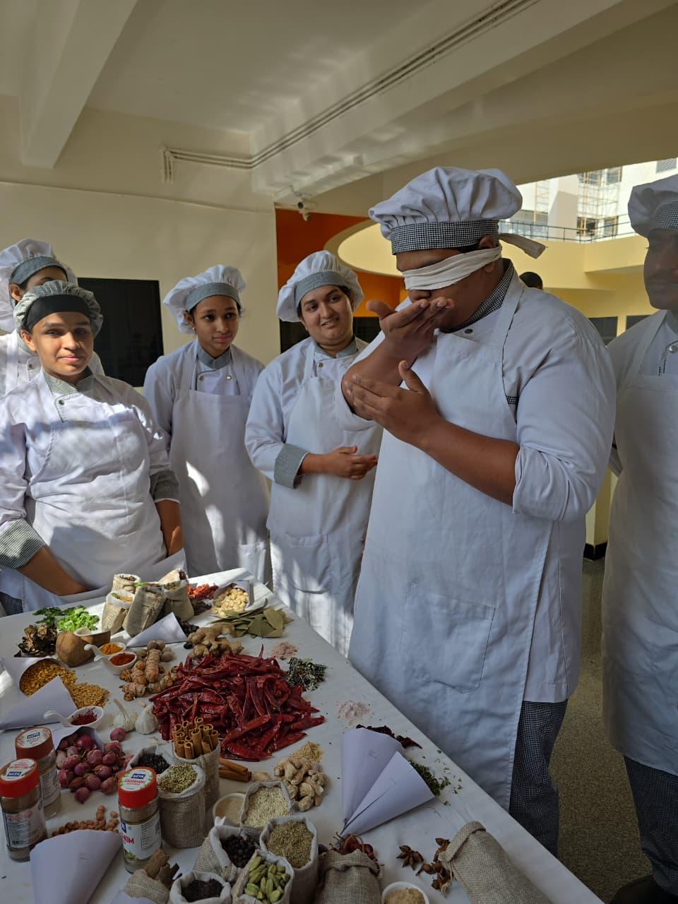 A key attraction of the event was the blindfolded spice identification activity, which tested participants’ sensory skills by challenging them to recognize spices using smell and touch alone. This hands-on experience encouraged students to rely on their olfactory senses, reinforcing the importance of ingredient knowledge in culinary and hospitality operations.
