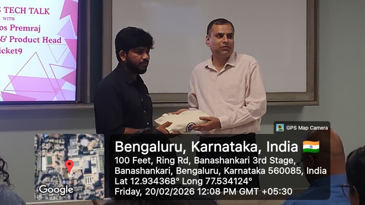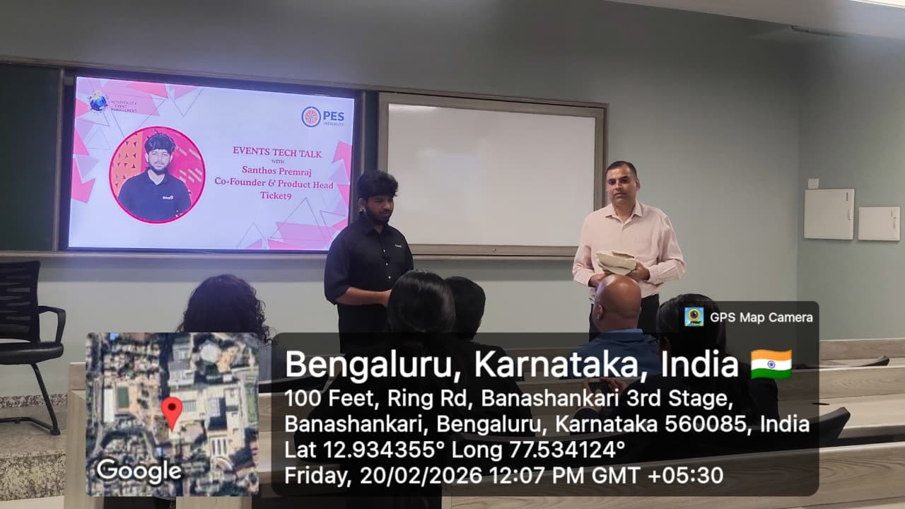 PES University hosted an insightful Event Tech Talk on February 20, 2026 at the GJBC Block, offering students a deep dive into the rapidly evolving world of event technology. The session commenced at 10:30 a.m. and brought together academic learning and industry expertise in an engaging and interactive format.