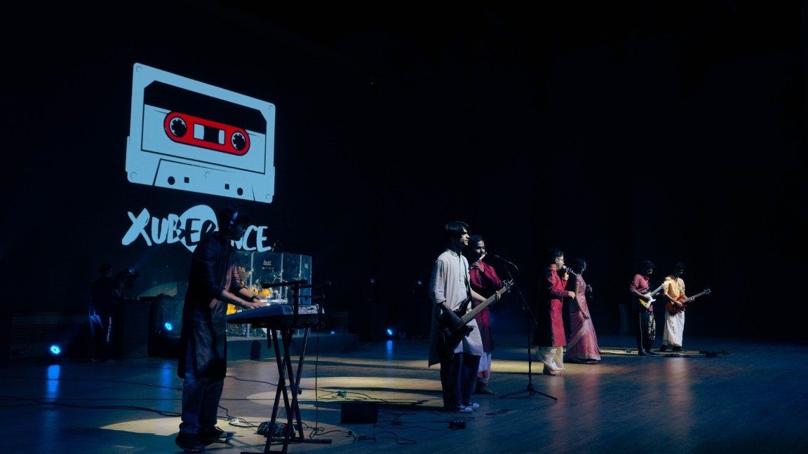 Following the felicitation ceremony, the heart of CulNite truly came alive with a series of spellbinding performances. The Department of Performing Arts opened the cultural segment with a flawless Solkattu performance in Trishra Jaati Triputa Tala, curated by Dr. V. Krishna. Musical performances by bands such as Xuberance, Inchara, E#, and Echo Chamber electrified the audience with a mix of Indian fusion, indie, rock, metal, and nostalgic renditions. The acapella group Pitch Please added a refreshing vocal dimension to the evening.