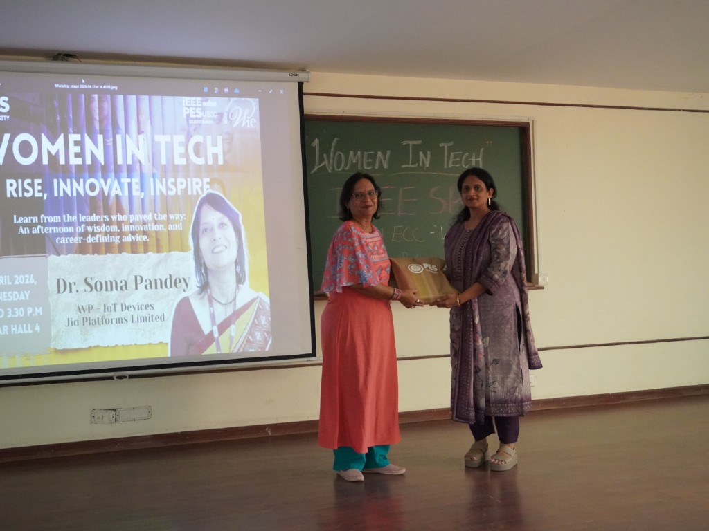 On April 15, 2026, PES University EC Campus hosted an inspiring and thought‑provoking session titled “Women in Tech: Rise, Innovate, Inspire” at Seminar Hall 4. The event brought together over 60 students and faculty members for an engaging discussion on technology, leadership, and inclusion in an era increasingly shaped by Artificial Intelligence.